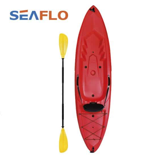 Πλαστικό kayak SF-1010 της εταιρείας Seaflo. Πρόκειται για ένα sit on top kayak, δηλαδή κάθεστε πάνω και έξω από αυτό. Σε περίπτωση πτώσης στο νερό είναι αρκετά εύκολο να ανεβείτε και να καθίσετε πάλι στη θέση σας.