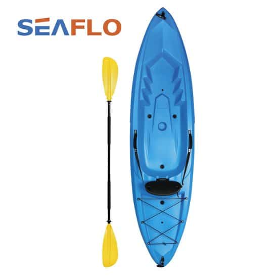 Πλαστικό kayak SF-1010 της εταιρείας Seaflo. Πρόκειται για ένα sit on top kayak, δηλαδή κάθεστε πάνω και έξω από αυτό. Σε περίπτωση πτώσης στο νερό είναι αρκετά εύκολο να ανεβείτε και να καθίσετε πάλι στη θέση σας. Τα kayak της κατηγορίας αυτής είναι τα πιο διαδεδομένα για μικρές βόλτες ή ψάρεμα και μπορούν να αποτελέσουν το εισαγωγικό μέσο για την ενασχόληση με την κωπηλασία. Έχει μήκος 2.45 μέτρα άρα ενδείκνυται να χρησιμοποιηθεί για μικρές βόλτες και παιχνίδι κοντά στην παραλία. Το συγκεκριμένο είναι κατάλληλο για 1 άτομο και μπορεί να μετάφερει μέχρι και 125kg. Μπορεί να μεταφερθεί εύκολα καθώς υπάρχει ένας τροχός στην πίσω ουρά του καγιάκ.