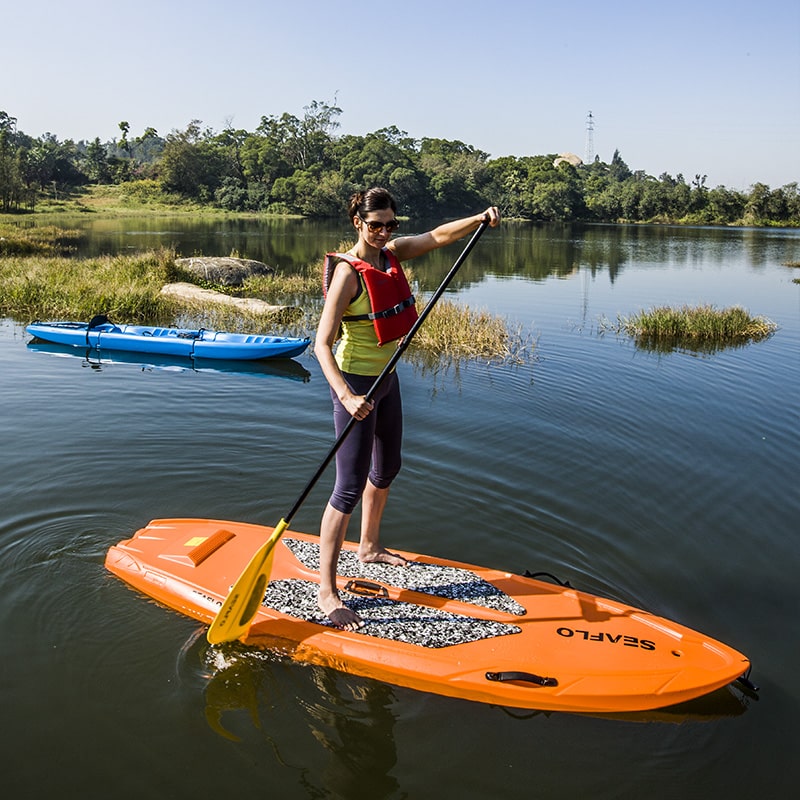 Το Seaflo SF-S002 είναι σχεδιασμένο για χρήση σε ήρεμα νερά ή για ελαφρύ surf. Περιλαμβάνουν δύο πλευρικές λαβές μεταφοράς, επιφάνεια με αντιολισθητική επένδυση που προσφέρει μια ασφαλή εμπειρία οδήγησης και αφαιρούμενα πτερύγια. Αποτελεί μια ολοκληρωμένη άσκηση για το σώμα, την ισορροπία, τη σταθερότητα και την καρδιακή σας δύναμη.