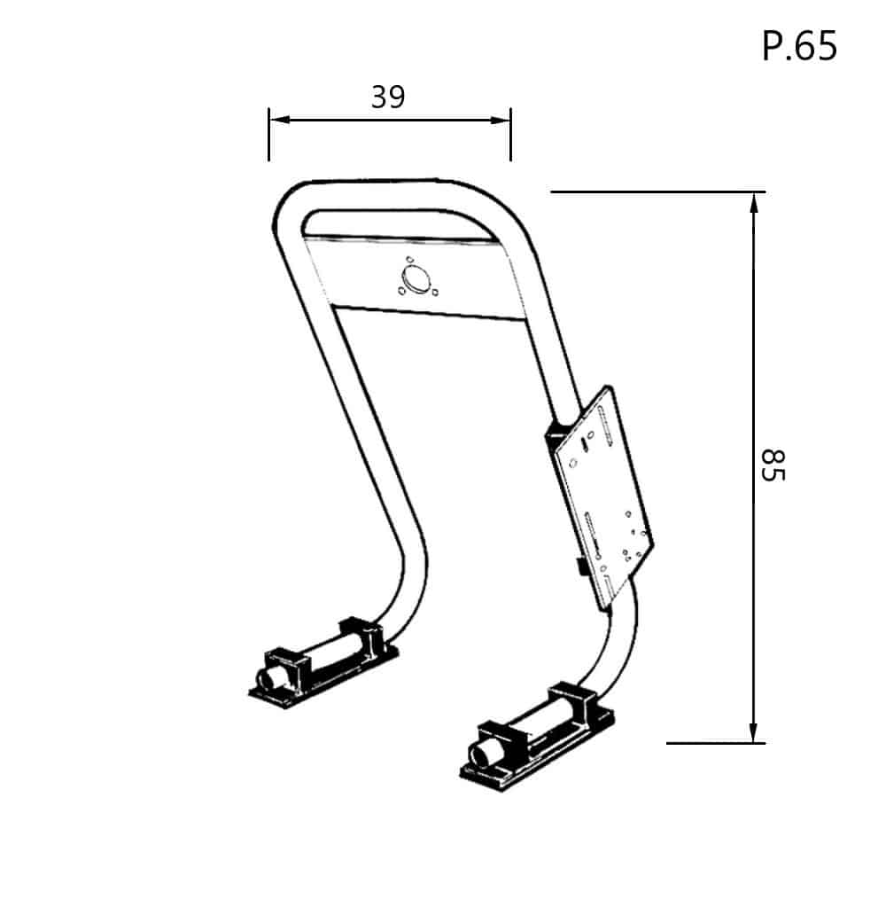 Στήριγμα από ανοξείδωτο χάλυβα με βάση στήριξης στο δάπεδο και πλαϊνή πλάκα κιβωτίου ελέγχου.