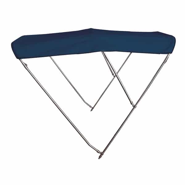 Με σωλήνες Ø 25 mm και όλα τα εξαρτήματα από ανοξείδωτος χάλυβας AISI 316. Πτυσσόμενα τόξα, ύφασμα πολυεστέρα/PVC αδιάβροχο ανθεκτικό σε UV, χρώμα blu navy. Παρέχεται πλήρης με θήκη. Αφαιρούμενη και πτυσσόμενη.