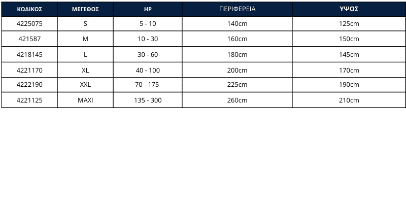 Η βαθμολογία hp που δίνεται είναι καθαρά ενδεικτική, οπότε όταν επιλέγετε το κάλυμμα δώστε προσοχή κυρίως στις διαστάσεις του κινητήρα σας.
