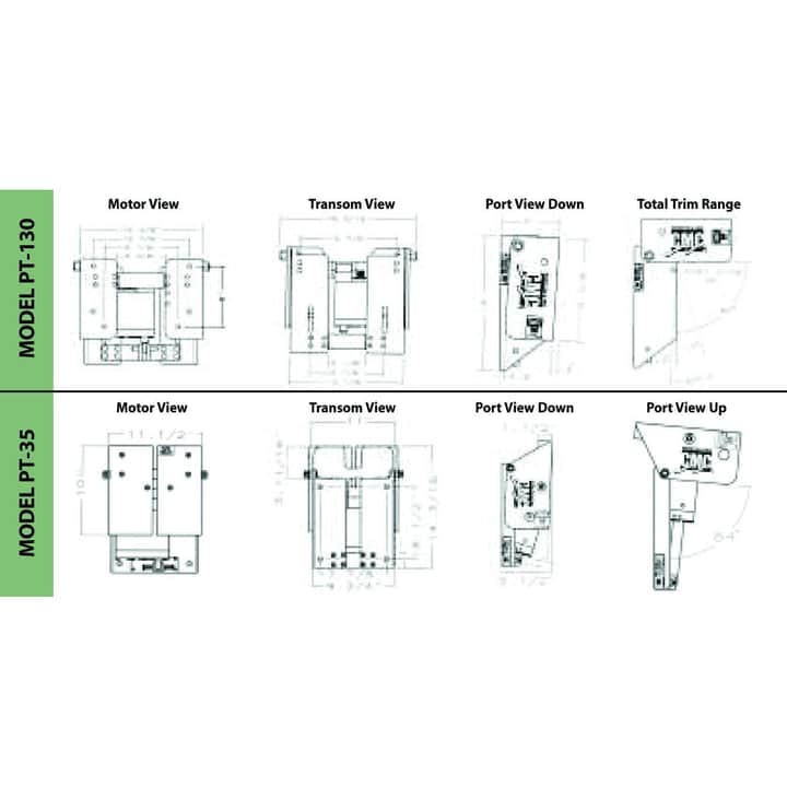 Σημείωση: Η εσωτερική διάσταση της περιοχής στήριξης του κινητήρα του PT-35 είναι 11 ίντσες. Πριν παραγγείλετε, βεβαιωθείτε ότι το μέγιστο πλάτος των ποδιών στερέωσης του σφιγκτήρα και/ή των μπουλονιών στερέωσης του κινητήρα που πρέπει να χωρούν σε αυτήν την περιοχή δεν υπερβαίνει αυτό το όριο των 11 ιντσών. Ανατρέξτε στα σχέδια όψης τραβέρσας. Τα μπουλόνια στερέωσης δεν περιλαμβάνονται στο PT-35.