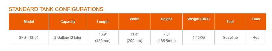 Η φορητή δεξαμενή καυσίμου σκάφους SEAFLO 12 λίτρων με δείκτη καυσίμου είναι κατασκευασμένη από υλικό διπλής στρώσης HDPE, το οποίο είναι ισχυρό και ανθεκτικό. Η αυτόματη βαλβίδα κενού εξασφαλίζει σωστή ροή καυσίμου και εξαλείφει την ανάγκη για χειροκίνητο εξαερισμό. Το φορητό ντεπόζιτο καυσίμου SEAFLO έχει σχεδιαστεί για χρήση σε όλες τις ναυτικές και μη θαλάσσιες εφαρμογές μικρών κινητήρων