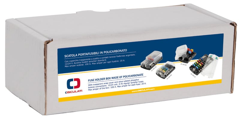 Επάργυρες επαφές φωσφορικού χαλκού. Λαμβάνει τυποποιημένες ασφάλειες μαχαιρωτές. επιτρεπτή τάση Ασφαλειοθήκη 6 Θέσεων 12/24 V.