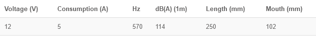 Ηλεκτρομαγνητική κόρνα με μειωμένες διαστάσεις αλλά με υψηλή απόδοση ήχου. Σώμα από ορείχαλκο λευκό σμάλτο και ανοξείδωτο ατσάλι, λευκή ορειχάλκινη τρομπέτα.