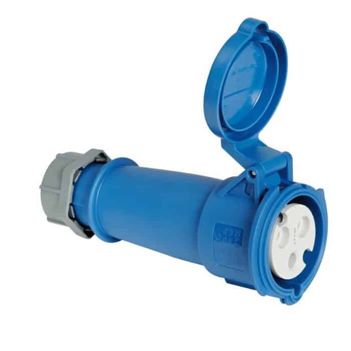 Πρίζα με σώμα από ανθεκτικό στην υπεριώδη ακτινοβολία UV, πίσω κάλυμμα προστασίας καλωδίων, επαφές από ασημένιο ορείχαλκο. Βύσμα από πολυανθρακικό + Moplen με σύστημα φραγής καλωδίων και επαφές ασημένιο ορείχαλκο. Τάση 220/110. Αμπέρ max 30Α.