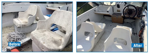 Βρέχουμε το fiberglass με γλυκό νερό. Πασπαλίστε το προϊόν απευθείας στην επιφάνεια και απλώστε με ένα σφουγγάρι μουλιασμένο σε νερό. Αφήστε να δράσει για 5 λεπτά, διατηρώντας την περιοχή πάντα υγρή. Τρίψτε με ένα πανί, βούρτσα ή βρεγμένο σφουγγάρι.