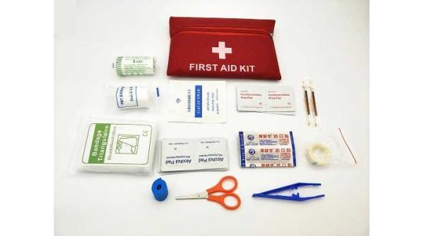 Τσάντα-ΚΙΤ πρώτων βοηθειών & Φαρμακείο με πρακτικό σχεδιασμό μεταφοράς. Περιλαμβάνει βασικά ιατρικά εφόδια για την αντιμετώπιση μικροτραυματισμών και καταστάσεων έκτακτης ανάγκης. Κατασκευασμένη από ανθεκτικό, αδιάβροχο πολυεστερικό ύφασμα, με φερμουάρ.