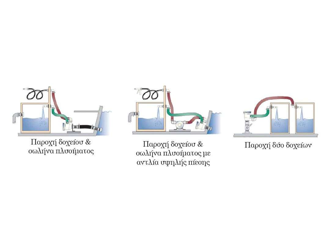 Το πλεονέκτημα της διπλής εξόδου είναι ότι επιτρέπει πολλαπλές εφαρμογές με την χρήση μιας μόνο αντλίας. Η δεύτερη έξοδος είναι ενσωματωμένη στον θάλαμο πίεσης. Η θέση και η κλίση των εξόδων έχουν ειδικά σχεδιαστεί ώστε να αποδίδουν το μέγιστο κατά την λειτουργία τους. Η αντλία με την διπλή έξοδο είναι πολλαπλών εφαρμογών. Επιτρέπει την ταυτόχρονη παροχή σε 2 δοχεία, την παροχή σε ένα δοχείο και έναν σωλήνα πλυσίματος. Με εγγύηση 3 ετών.