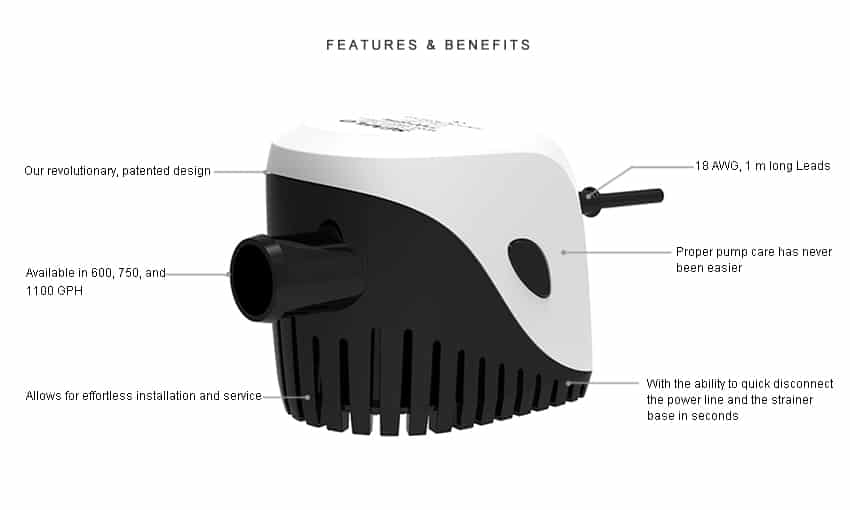 Οι αυτόματες αντλίες σεντίνας SEAFLO 600GPH ανήκουν στην κατηγορία των αντλιών που η λειτουργία τους δεν απαιτεί τη χρήση ξεχωριστού φλοτέρ χάρη στο ενσωματωμένο φλοτέρ που διαθέτουν στη βάση τους ώστε να ανιχνεύουν τη στάθμη του νερού και να εξασφαλίζουν μία πλήρως αυτοματοποιημένη λειτουργία.