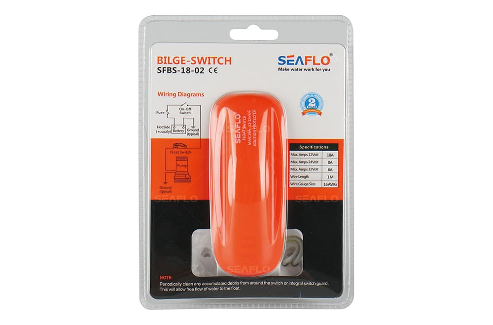 Διαθέτει ποιοτικό σχεδιασμό και άριστη κατασκευή για αξιόπιστη συνεργασία με την αντλία σεντίνας. Για αντλίες με ισχύ έως 20 αμπέρ. Οι διακόπτες της SEAFLO είναι σχεδιασμένοι για χρήση με γλυκό νερό και αλμυρό νερό.